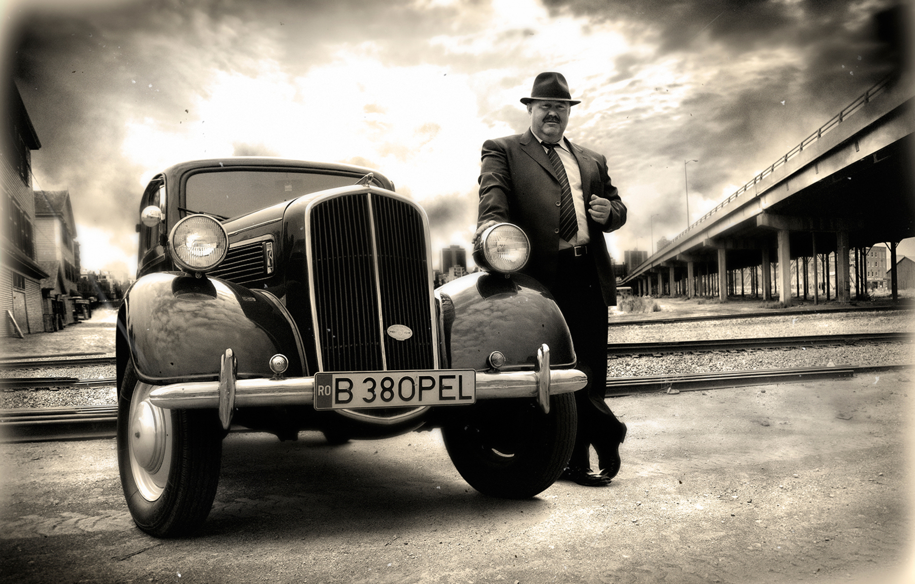 That's a picture I shot for the owner of the car, who really is a police man. I tried to create the feeling of an old picture using blurs, sepia tones, dust and scratches etc. He liked it very much! To see more of my photos, visit www.upstairs.com.ro