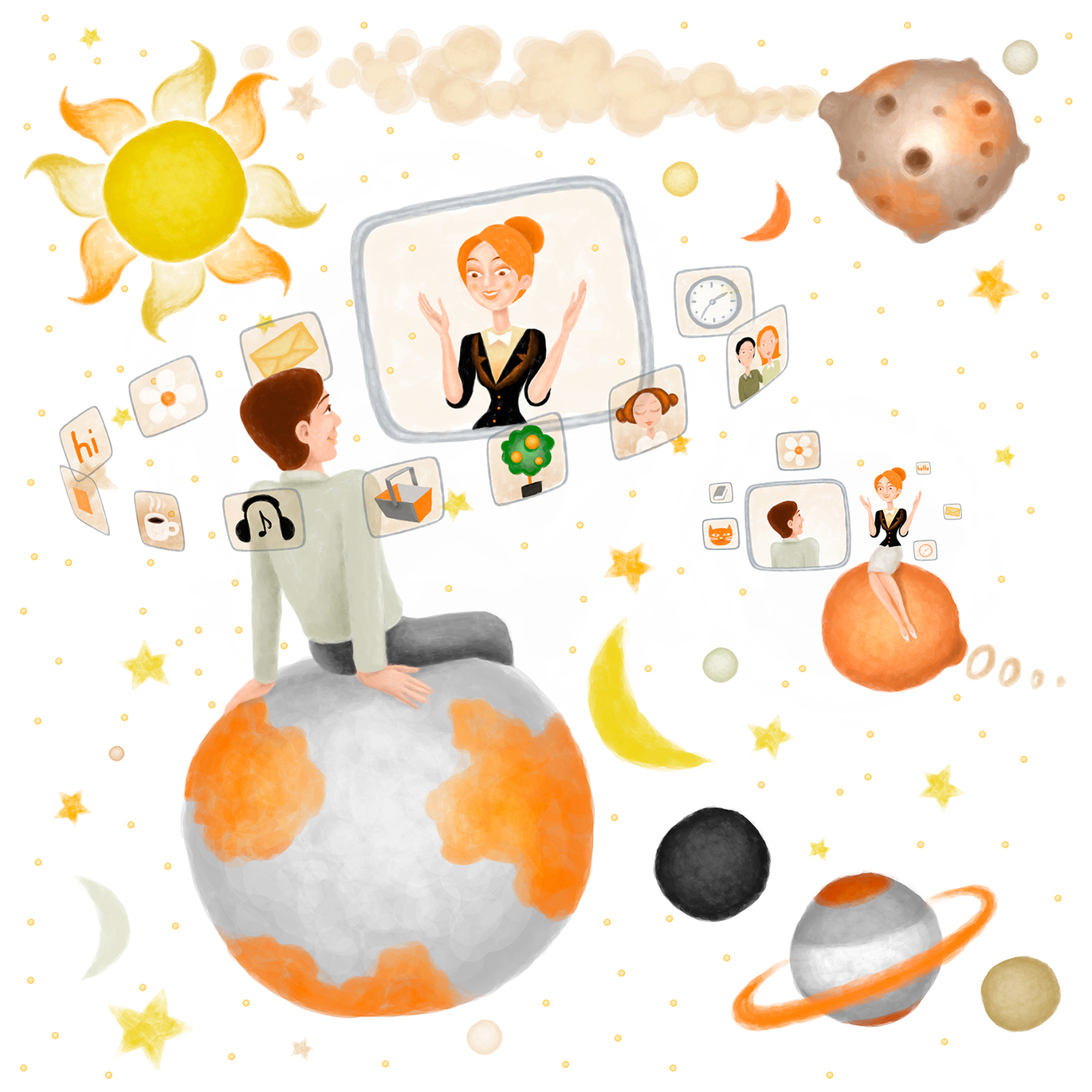 Two funny drawings illustrating the future in communication.