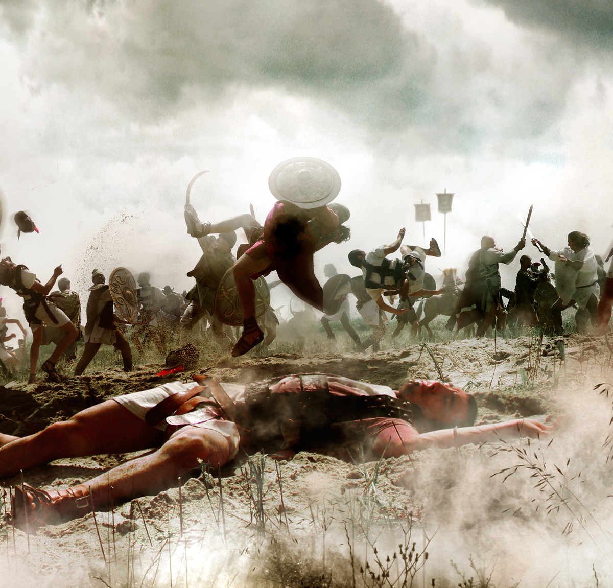 That's a mix of making-off pictures that I shot on a video set for an Ursus commercial. The only thing that bothers me is that I didn't have the picture with the Roman soldier in the right, so I had to buy and modify a royalty free picture. See more on www.upstairs.com.ro