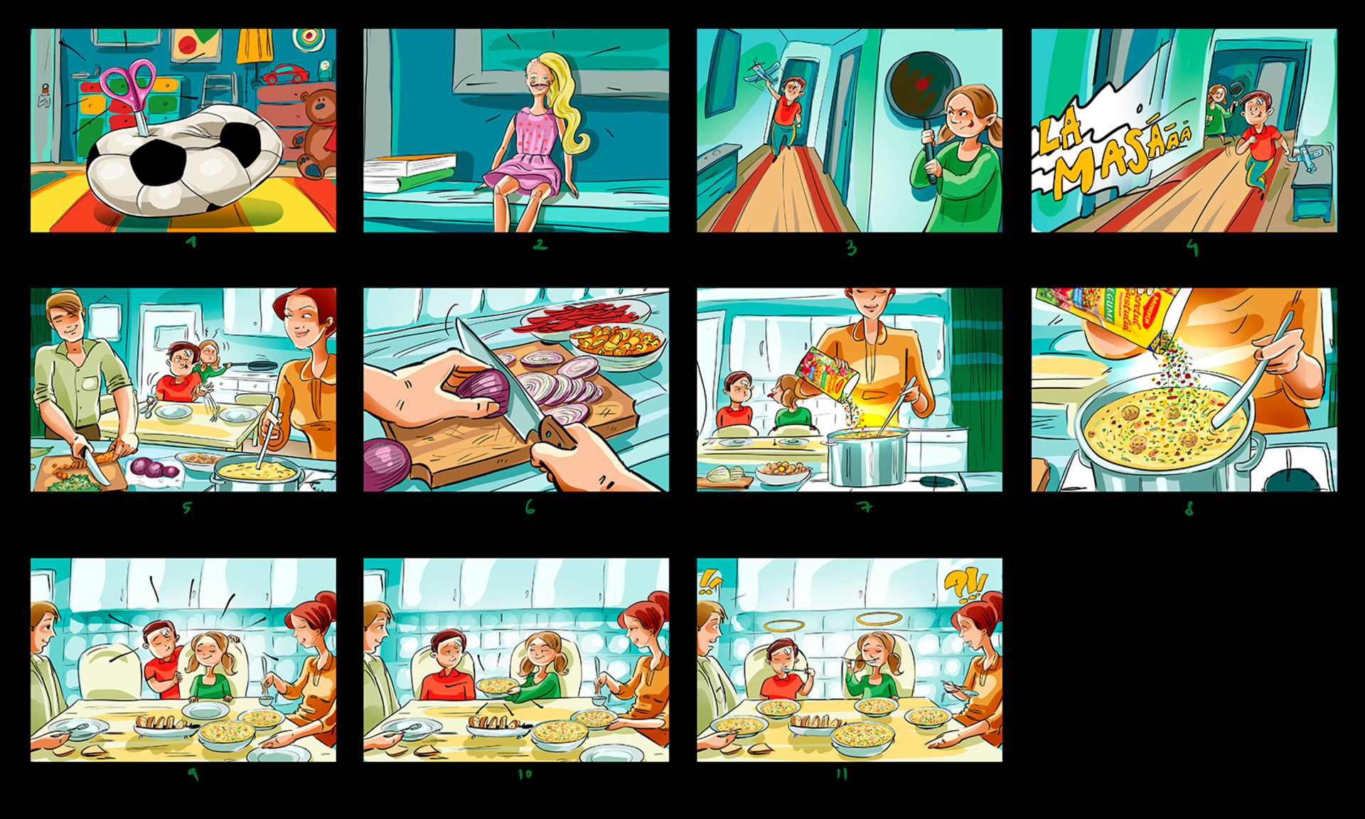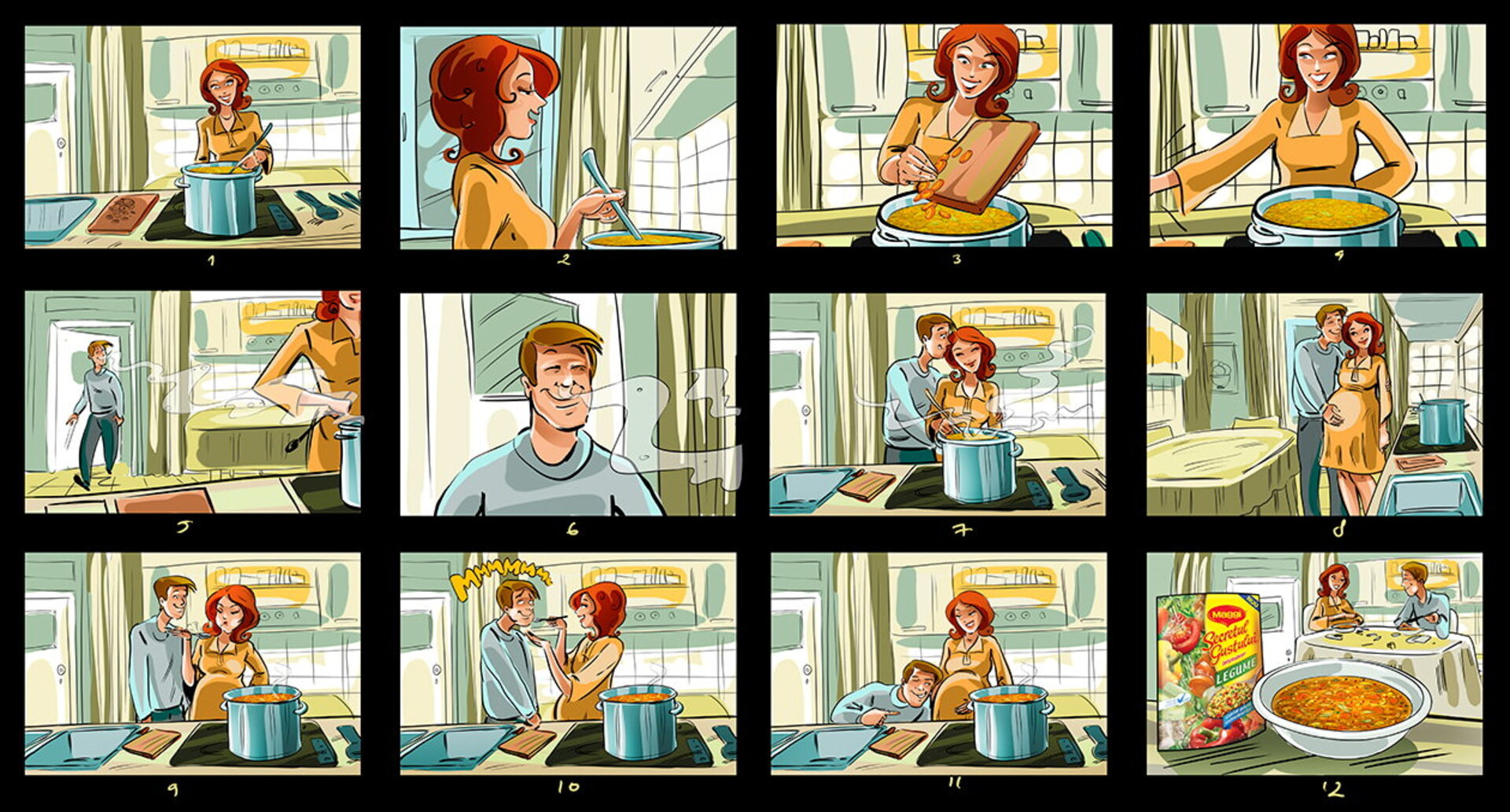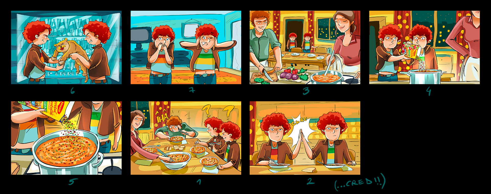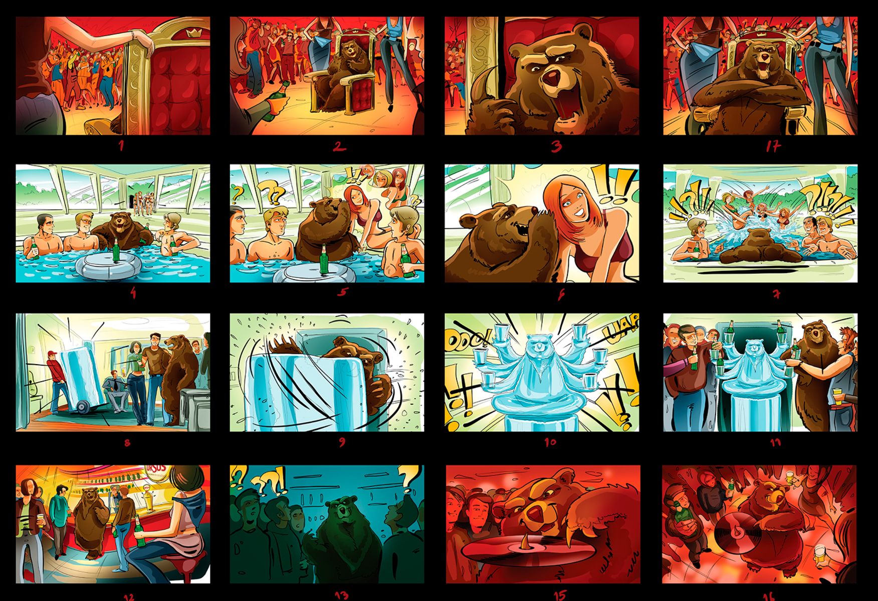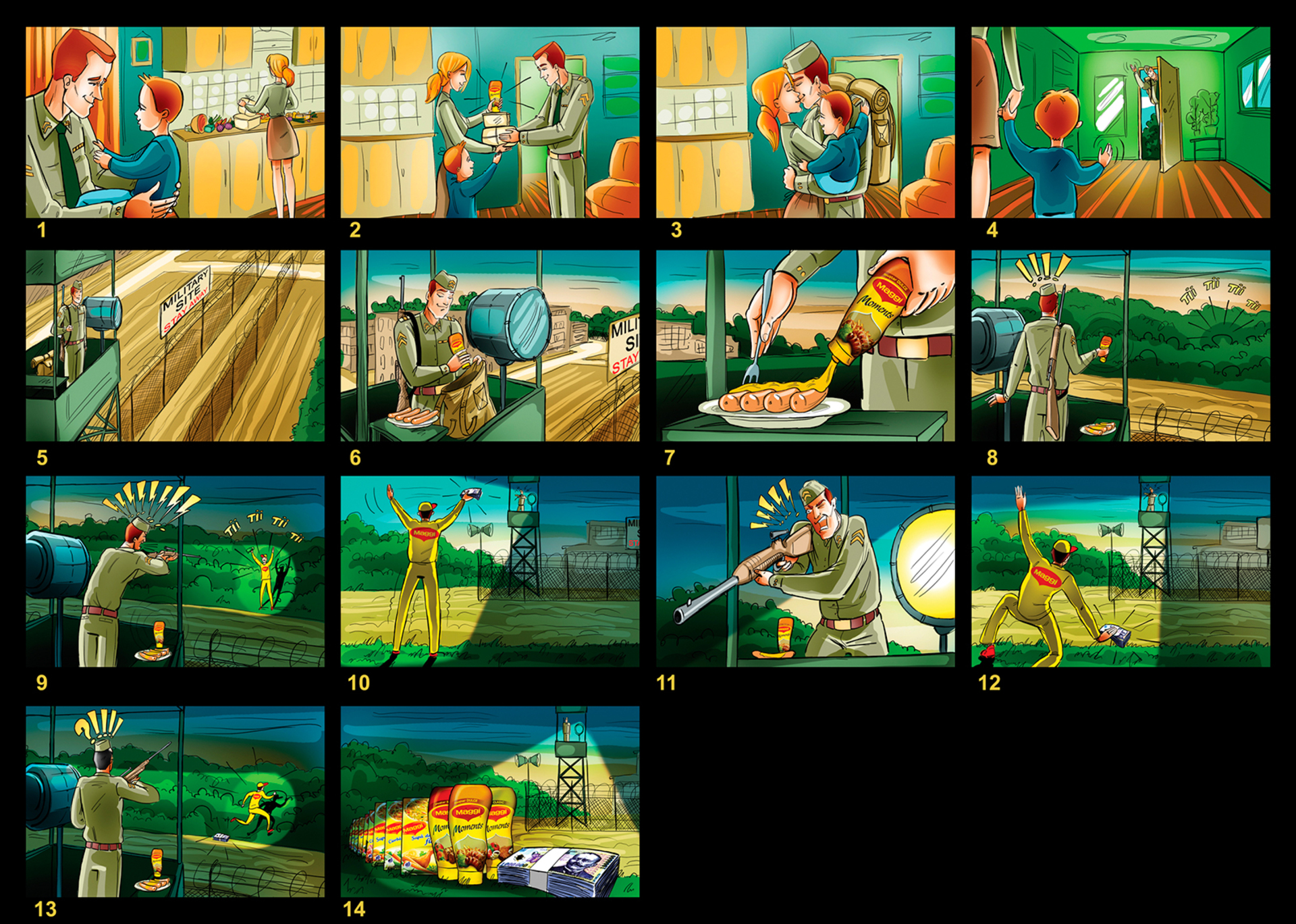 I have a lot of these :) When I draw a storyboard, I think first about the client. I try as much as I can to make it understandable even without text explanations. That's why i try to act like a video camera and take some simple but nice snapshots. This way it's easier for the client, who's neither a copywriter, nor an art director (most of the times).