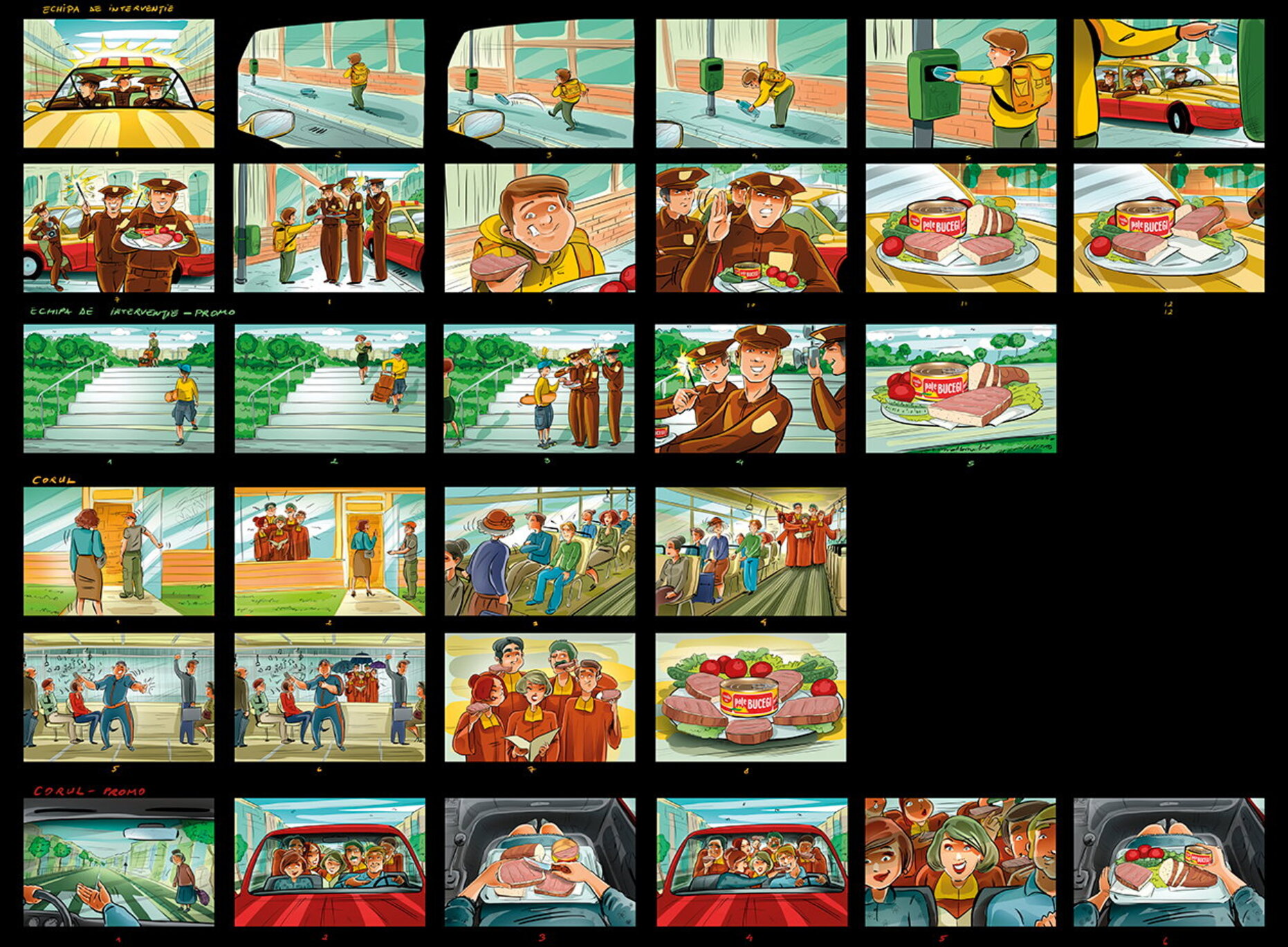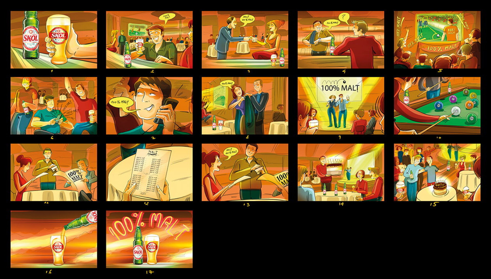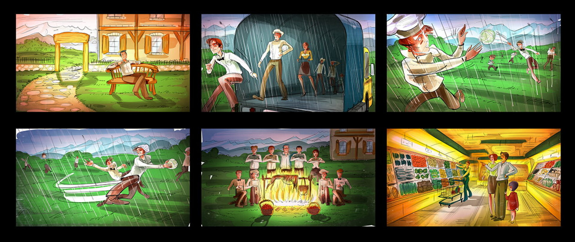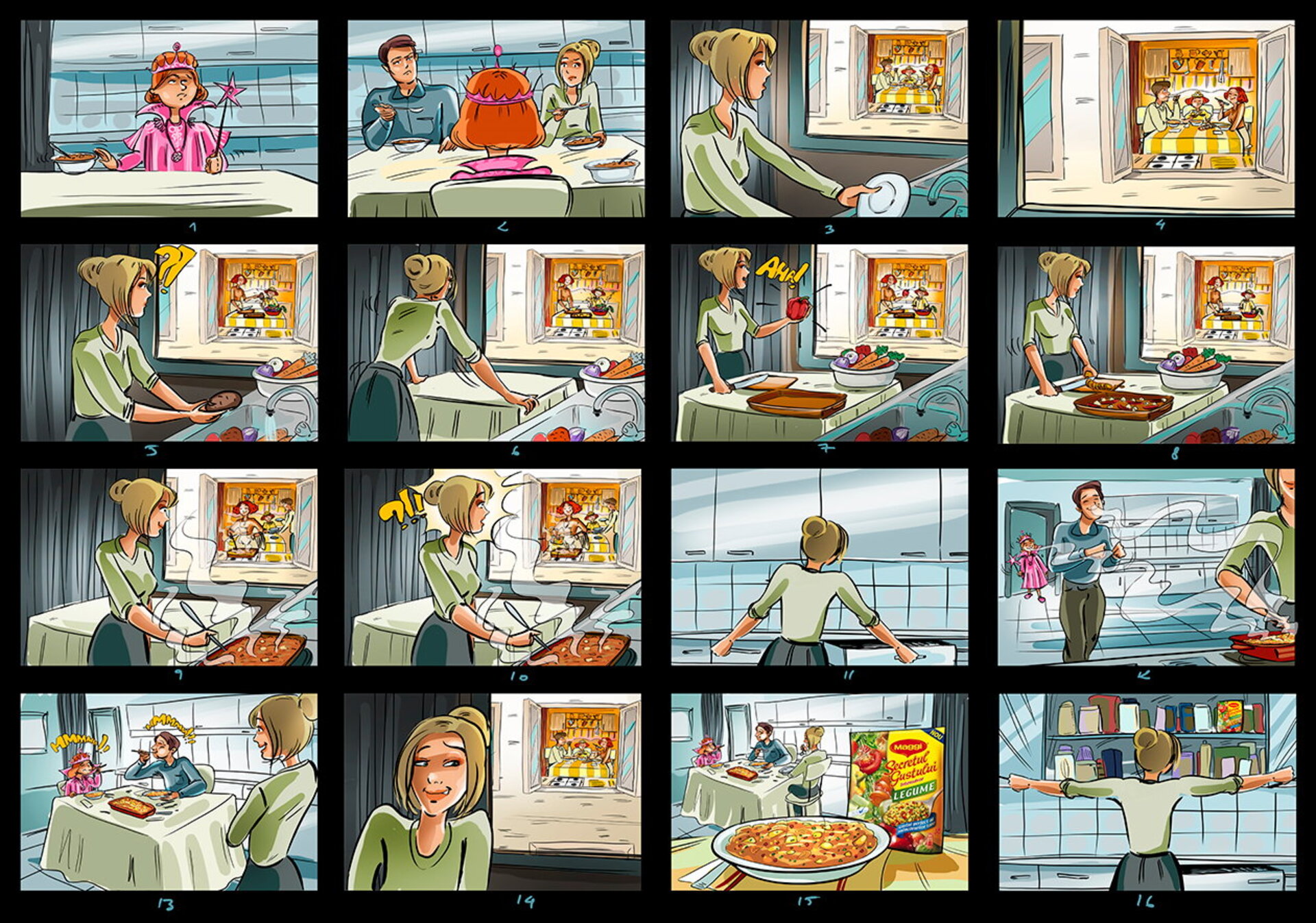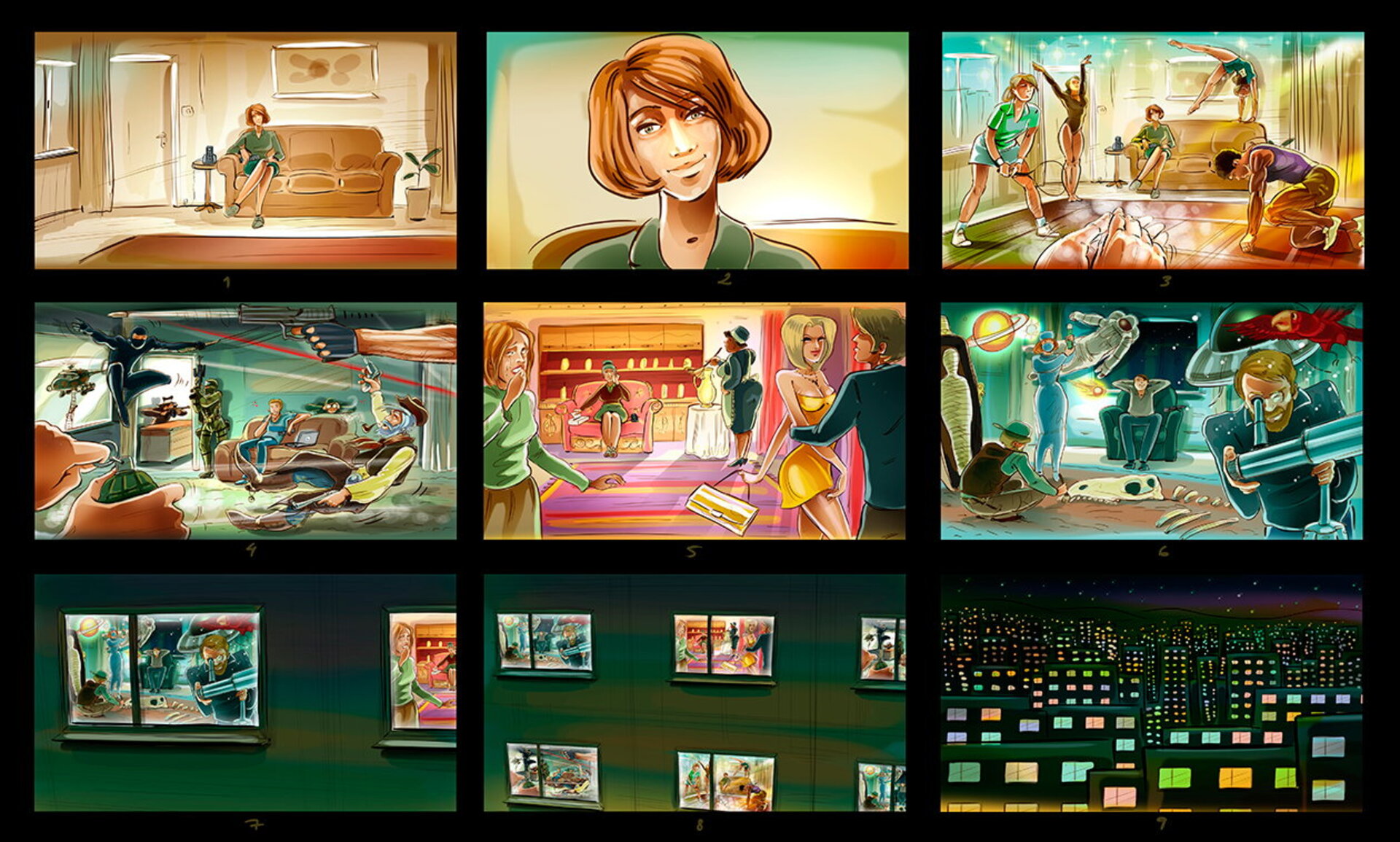 I have a lot of these :) When I draw a storyboard, I think first about the client. I try as much as I can to make it understandable even without text explanations. That's why i try to act like a video camera and take some simple but nice snapshots. This way it's easier for the client, who's neither a copywriter, nor an art director (most of the times).