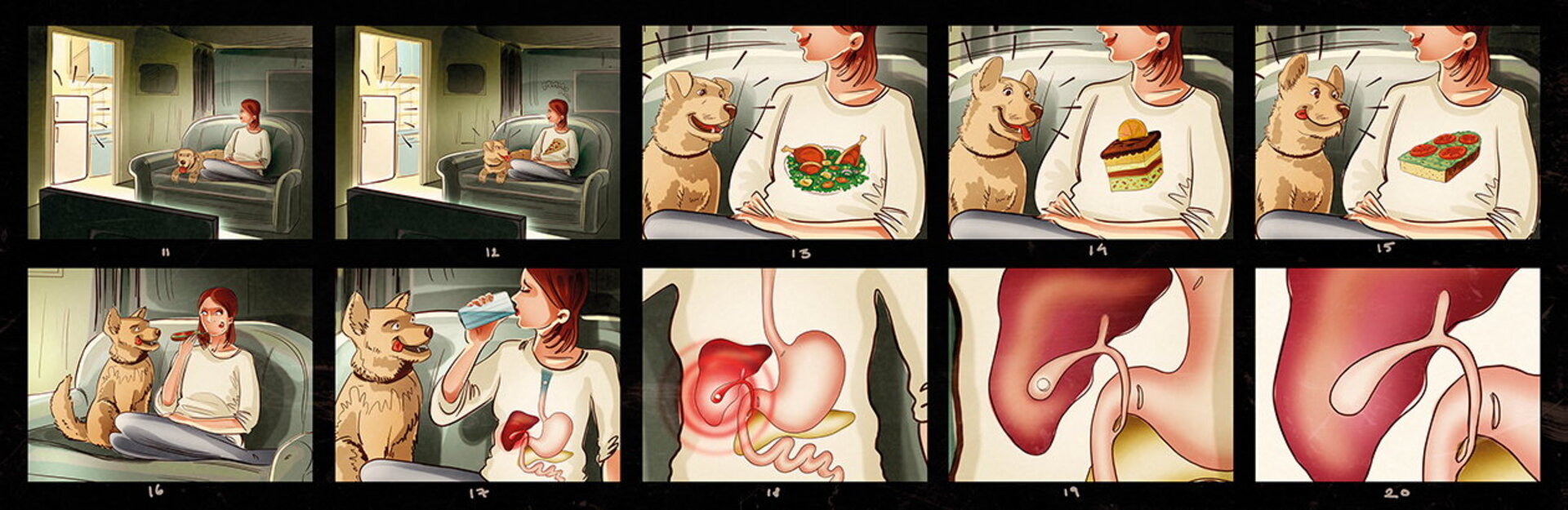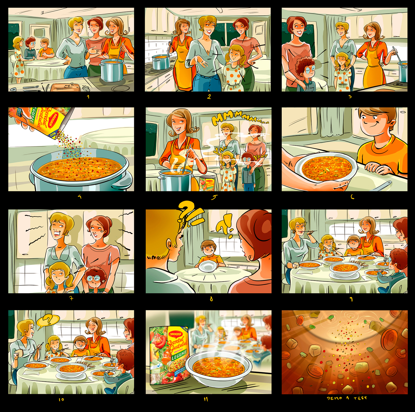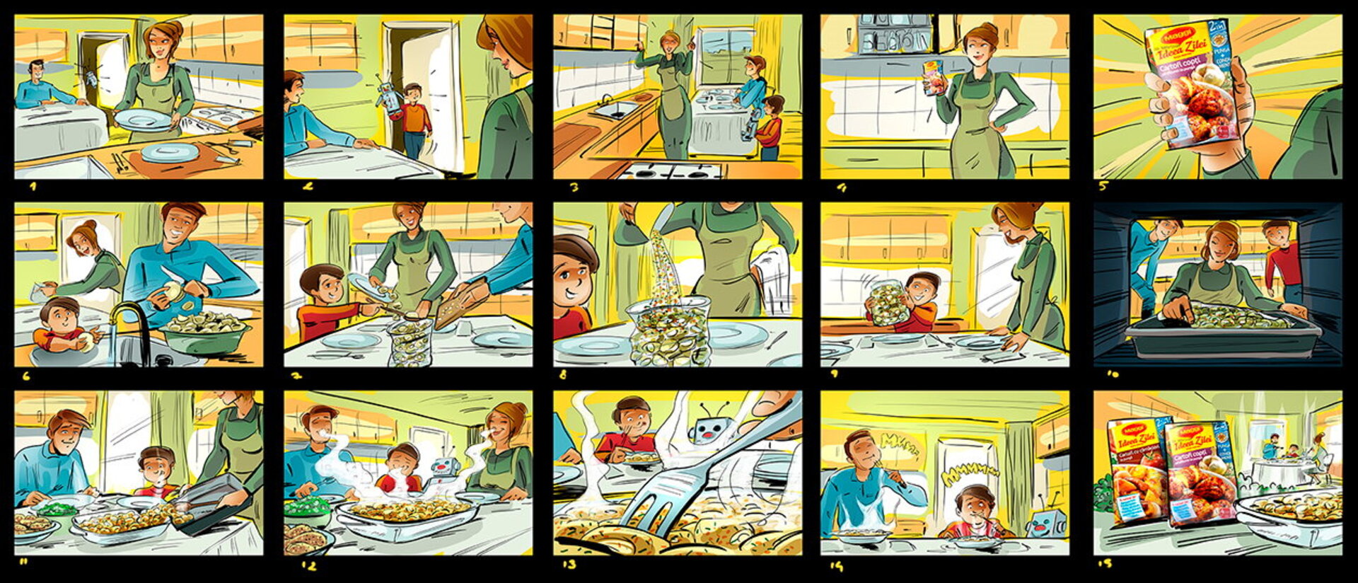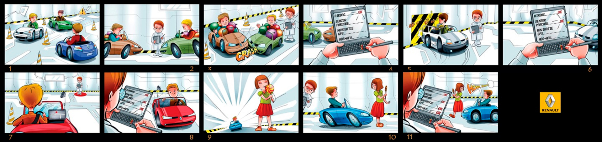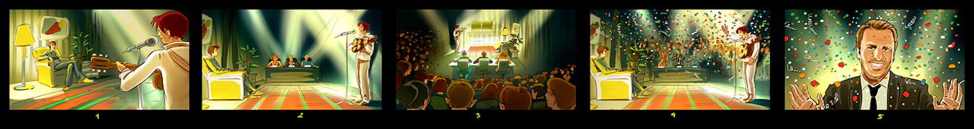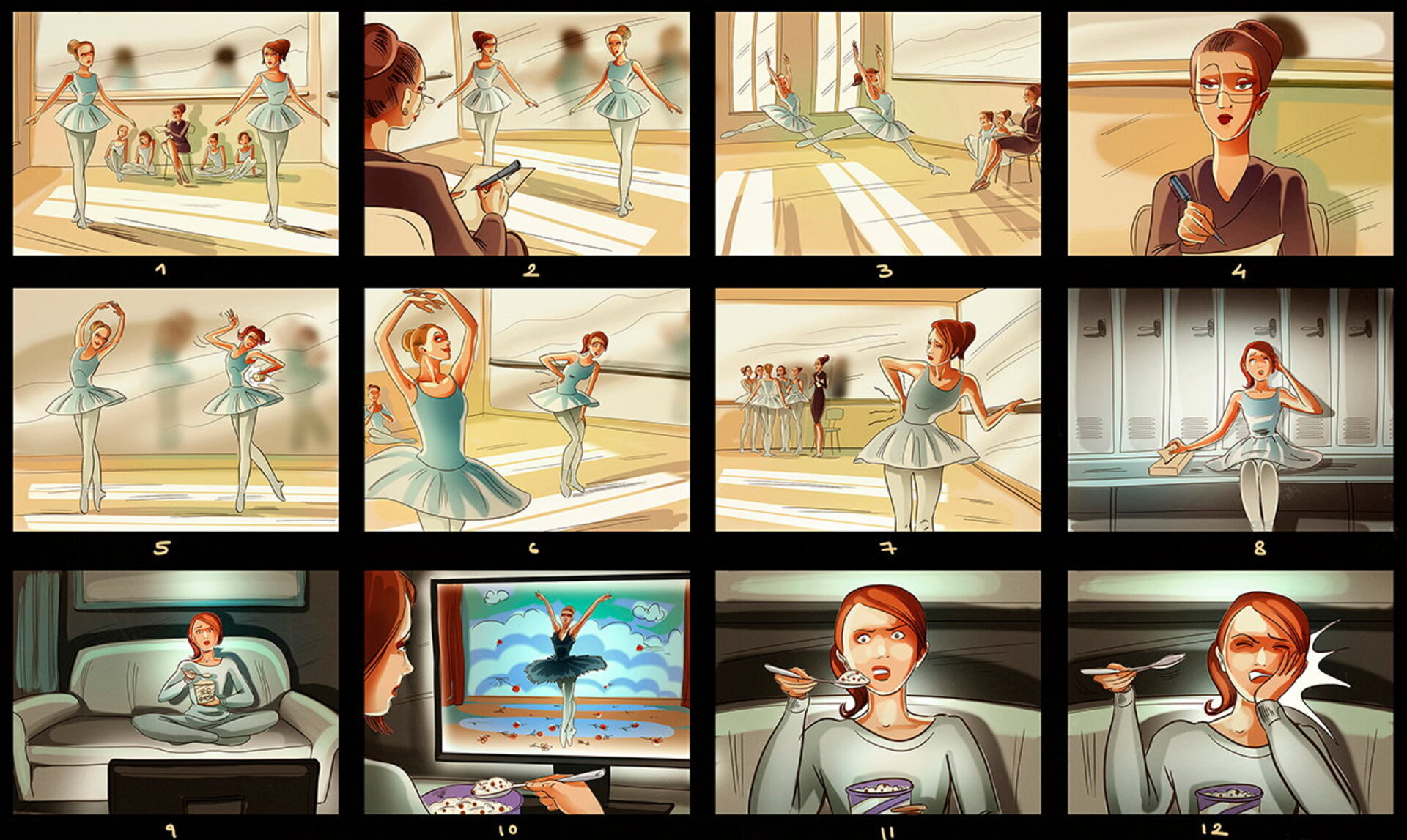 I have a lot of these :) When I draw a storyboard, I think first about the client. I try as much as I can to make it understandable even without text explanations. That's why i try to act like a video camera and take some simple but nice snapshots. This way it's easier for the client, who's neither a copywriter, nor an art director (most of the times).